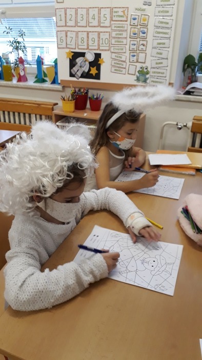 4. 12. se naše škola proměnila na školu čertovskou. Samozřejmě nás zachraňovali i andílci. Kromě češtiny a matematiky jsme zkoušeli i speciální čertovské disciplíny – čertovské šklebení, strašení i zlobení.