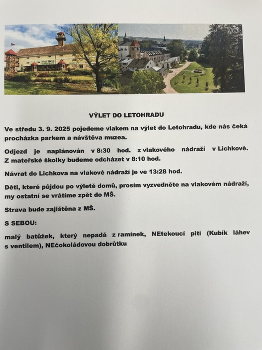 Úvod > Mateřská škola > Aktuality MŠ > Adaptační výlet - Letohrad