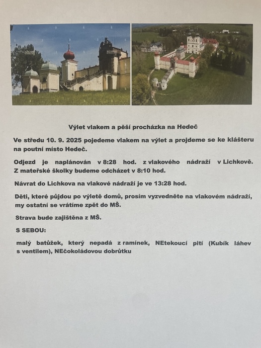 Úvod > Mateřská škola > Aktuality MŠ > Výlet vlakem a pěšky na Hedeč