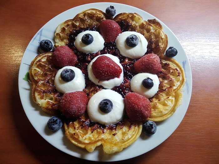 Postup: Nejprve si připravíme vhodnou mísu ve které ušleháme vajíčka s vanilkovým a krupicovým cukrem do pěny. Postupně přidáváme citronovou šťávu, tvaroh a opatrně vmícháme prosátou mouku s kypřícím práškem a mléko. Vznikne hladké těsto, které necháme před smažením odpočinout. Tím ještě více zhoustne a nebude se ve vaflovači trhat a podobně zlobit. Vaflovač necháme důkladně rozehřát a vždy vymažeme olejem. Hotové vafle zdobíme podle své fantazie a chuti.